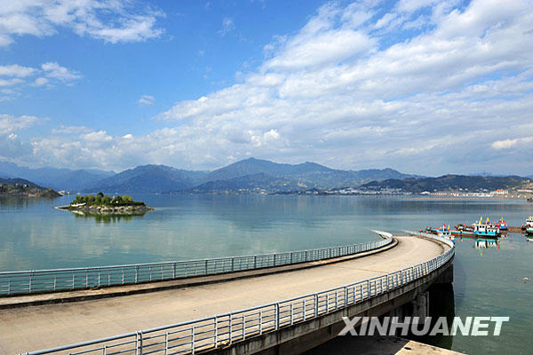 三峡工程完成2008年试验性蓄水 现坝上平湖美景