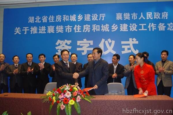 省住房和城乡建设厅与襄樊市人民政府签订关于推进襄樊市住房和城乡建设工作备忘录