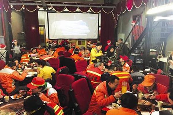 武汉:火锅店邀百余环卫工免费吃火锅