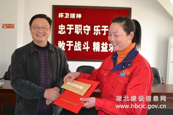 襄阳:市城管局长为全国优秀环卫工人贾金红颁奖