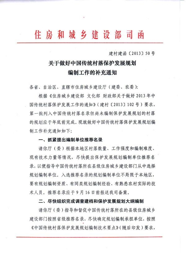 关于做好中国传统村落保护发展规划编制工作的通知
