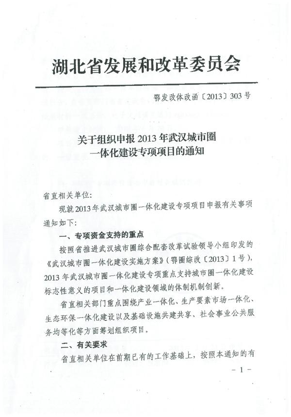 关于转发省发改委《关于组织申报2013年武汉城市圈一体化建设专项项目的通知》的通知