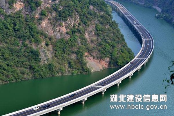 水上公路即古(夫)昭(君桥)接线路,总长10.9公里,是连接兴山县城与宜巴高速平邑口入口的快速通道,路基宽12米,设计时速60公里。其中有4.4公里建在三峡库区香溪河和古洞口二级电站水库之上,故得名“水上公路”。