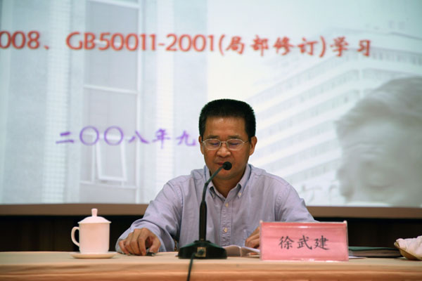 徐武建就如何做好全省建筑工程抗震标准宣贯培训工作提出了三点要求:一是从构建社会主义和谐社会的高度,充分认识贯彻执行建筑工程抗震标准的重要性;二是准确把握并严格执行建筑工程抗震标准,确保建筑工程的抗震防灾能力;三是加强建筑工程抗震标准宣贯培训,强化建筑工程抗震标准实施的监督管理。