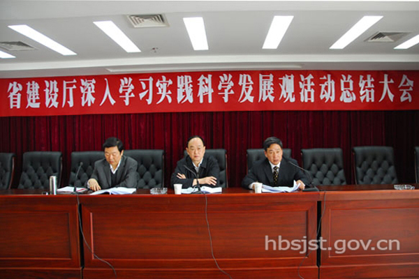 李德炳书记总结了建设厅学习实践科学发展观活动的基本情况、主要做法,指明了下一步努力的方向。他指出,学习实践科学发展观活动已告一段落,但深刻理解、全面实践科学发展观是一个长期的任务,当前要突出抓好以下几个方面的重点工作:一是要强化规划管理,在统筹城乡科学发展上添措施,要端正发展理念,坚持城乡区域统筹,推进设施共享,强化实施监督;二是要高度关注民生,在维护群众根本利益上下功夫,要重点抓好住房保障,强力推进建筑节能,着力抓好污水处理,突出抓好垃圾处理;三是要加快产业发展,为保持经济平稳较快增长做贡献,要以结构调整为重点来加快建筑业发展,坚定信心以加快房地产发展;四是要创新体制机制,在激活凝聚行业管理力量上求突破,要建立健全城建管理体制,理顺城管执法管理体制。李书记还要求今后要切实加强自身建设,以良好的精神风貌抓好各项工作的落实,要进一步加强思想建设、班子建设、机关干部队伍建设、机关作风建设、党风廉政建设和后勤保障建设。
