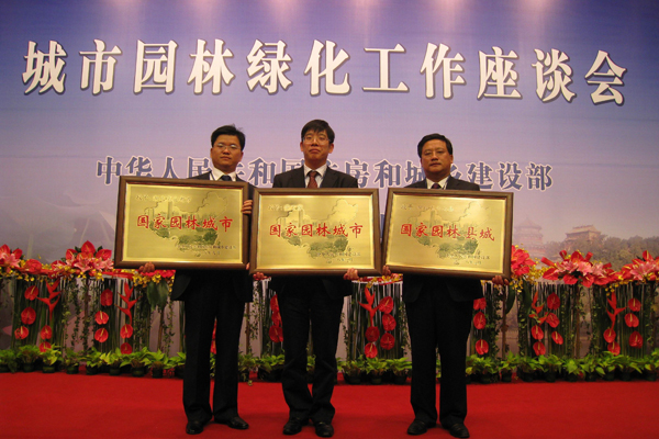 本网讯 通讯员张磊报道:10月28日上午,全国城市园林绿化工作座谈会在京召开。会议主要内容是部署新时期城市园林绿化工作任务,学习贯彻“关于加强城市绿地系统建设提高城市防灾避险能力的意见”,同时向2007年和2008年获得国家园林城市、国家园林县城、国家园林城镇称号的城市、县、镇颁发了奖牌。