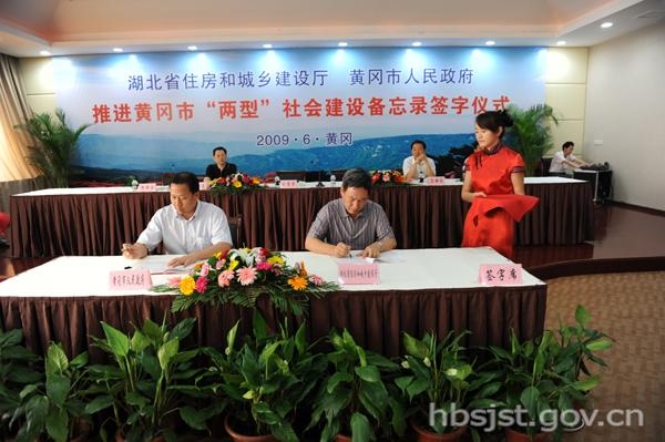 本网讯 记者曹琳报道:6月23日,省住房和城乡建设厅与黄冈市政府在黄冈签订了关于推进黄冈市“两型”社会建设备忘录,共同推进黄冈市“两型”社会综合配套改革的建设。 省住房和城乡建设厅厅长李德炳,副厅长占世良、杨世元以及黄冈市市委、市政府相关领导出席了签字仪式。