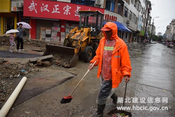本网讯 通讯员邱浩报道:9月1日下午三点多,正是上班时间,天下起了大雨,城区大街小巷车水马龙,到处是冒雨上班的人和车。由于受连日来的大雨影响,房县城区道路不同程度地淤积杂物,为保持道路卫生,环卫工人冒雨作业,认真清扫路面垃圾和积水。尽管雨水增加了作业难度,但并没有影响她们的工作热情,从而保证了道路像平时一样洁净。