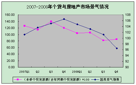 住房公积金个人贷款与房地产市场景气情况密切相关,2007年四季度以来,由于房地产市场表现低迷,个人贷款发放呈下降趋势,2008年三、四季度个贷发放额同比分别减少18.34%、14.95%,全年同比减少165.64亿元,降幅为7.52%。2008年末,全国个贷率(个人贷款余额/缴存余额)为50.30%,同比减少2.53个百分点。