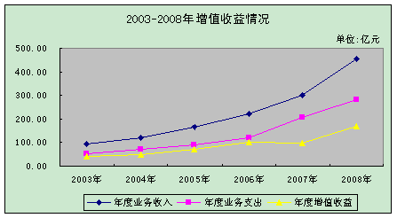 2008年业务收入为453.56亿元,同比增加152.67亿元,增幅为50.74%。业务支出为283.46亿元,同比增加78.48亿元,增幅为38.29%。增值收益为170.10亿元,同比增加70.49亿元,增幅为70.77%。年末贷款风险准备金余额为285.67亿元,占贷款余额的4.68%;年末城市廉租住房建设补充资金总额为191.93亿元,按规定累计向同级财政上缴96.98亿元。