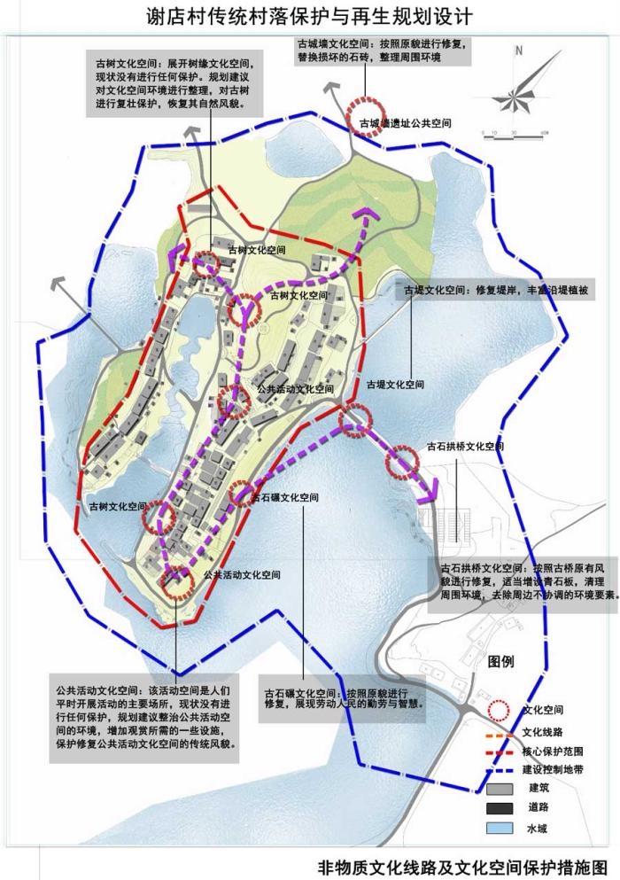 重点整理与修复古树环境空间、古城墙遗址空间、古堤湖岸空间、古石碾农耕生产空间、古石拱桥文化空间等节点;适当增加公共活动区及市政配套所需的一些设施。