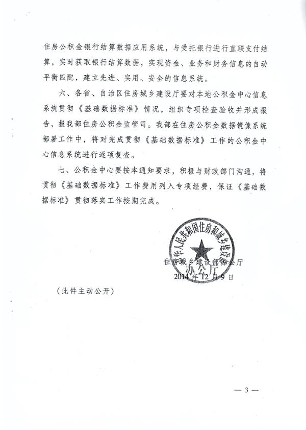 为做好《住房公积金基础数据标准》(JGJ/T320-2014)在我省的贯彻落实,现将住房城乡建设部办公厅《关于贯彻落实住房公积金基础数据标准的通知》(建办金〔2014〕51号)转发给你们,请按要求认真做好《基础数据标准》贯彻落实工作。并就有关事项通知如下: