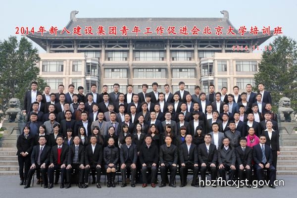 本网讯 通讯员涂峰报道:11月9日至13日,新八建设集团青年工作促进会北京大学学习培训班在北京大学校内成功举办。新八集团青促会79名青年委员参加了由集团公司组织的“北京大学领导力提升”学习培训活动,这次培训班是集团公司送各位青年委员走进国内、外高等学府学习、深造计划的第一步,意义重大,公司高层领导极为重视本次培训活动,在集团公司董事长刘先成的带领下,集团全体领导与青促会委员同赴北京,在全国最高学府北京大学参加了本次学习培训班合影和开学典礼。