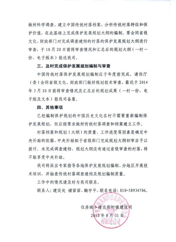 附件: 《关于做好中国传统村落保护发展规划编制工作的补充通知》(建村建函[2013]50号)