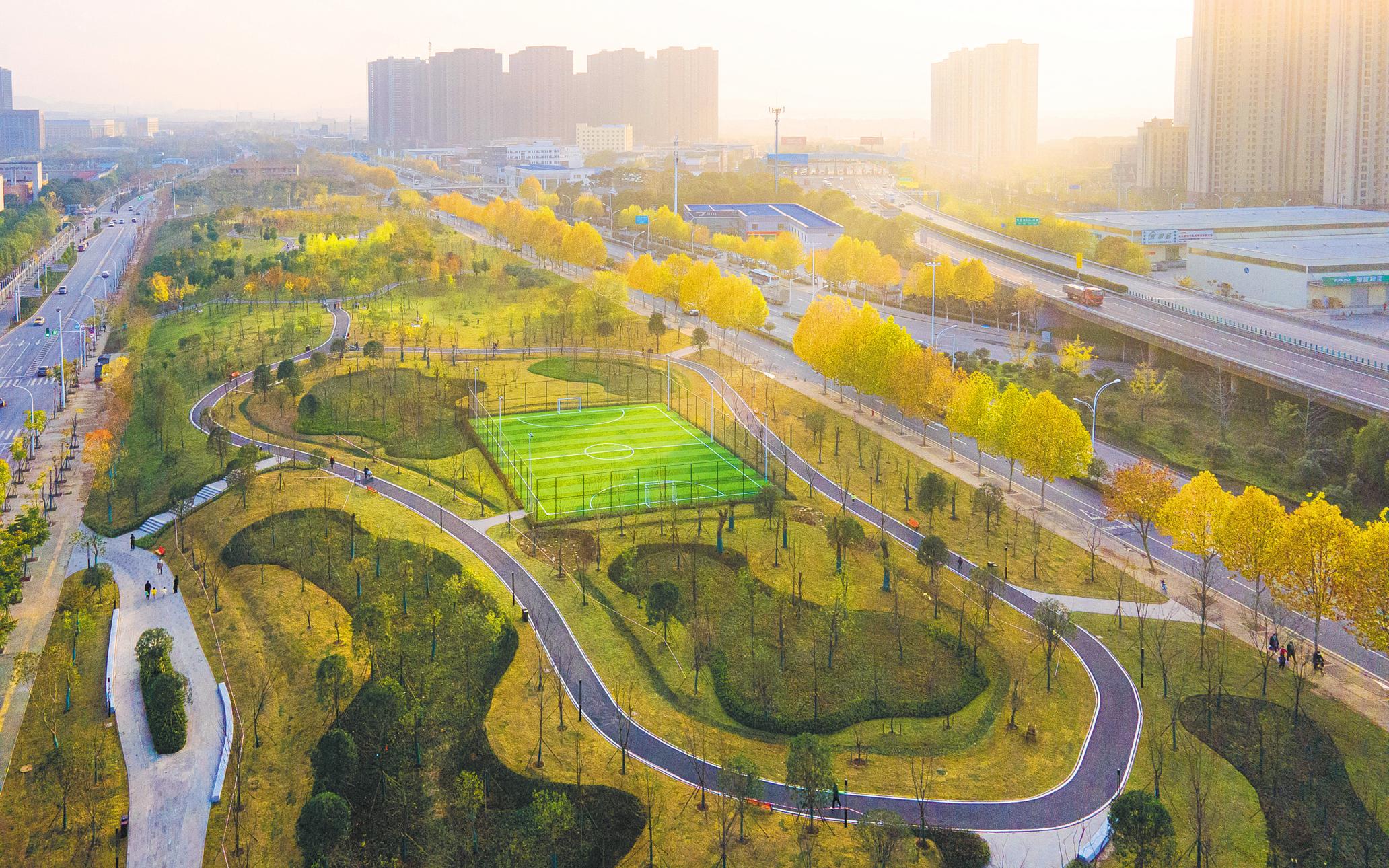 12月5日,武汉市黄家湖西路“口袋公园”全景。近年来,武汉市利用城市“边角余料地块”和“巴掌地块”,在中心城区建设绿色驿站、街道小景和袖珍公园,被市民誉为“口袋公园”。武汉市园林和林业局负责人介绍,年底前100个“口袋公园”将全部建成开放。(蔡俊)