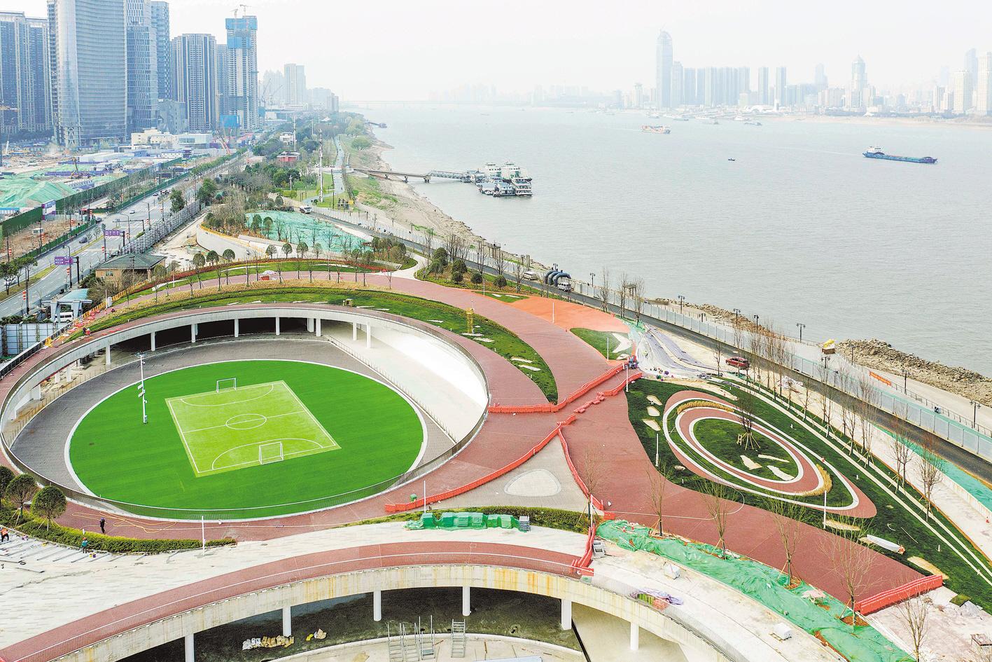 连日来,位于武昌滨江商务区核心段的月亮湾城市阳台工程(一期)工地上,施工人员正在加快收尾施工。该项目主体结构已基本完工,正在进行外立面装修和精细化提升等施工。这处武汉长江江滩,将蝶变成市民观江赏景的大型亲水公共空间。(湖梅涛)