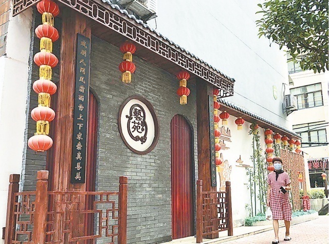 走进位于武汉市江岸区解放公园路口的艺苑小区,仿佛走进了戏院。高大的门楼融合了各种戏曲元素,黄鹤楼、祥云、宝葫芦"跃"上文化墙,墙上还以褐底白字的古时雕花刻板形式呈现了艺苑小区的介绍和小区导视图。小区居民常骄傲地说:"改造前小区环境脏乱差,天天都想搬出去,看看现在,我们小区的环境和配套不得比其他新小区差,所以大家没人愿意搬家咯!"