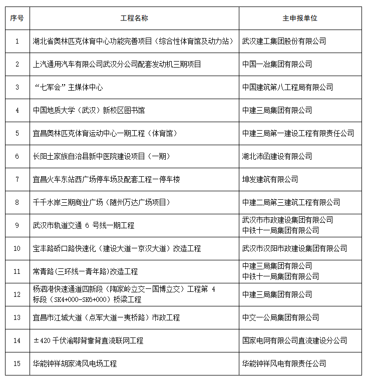 湖北省15项工程入选2020-2021年度第一批国家优质工程奖